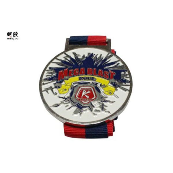 Personalize Zinc Alloy Metal Medals Soft Enamel Fill Design , Silver